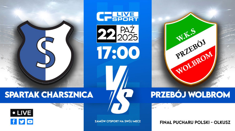 Czytaj dalejW środę 2.10.2025 r. o godz. 17:00 na boisku MOSiR w Olkuszu odbędzie się finałowy mecz Pucharu Polski na szczeblu Podokręgu Olkusz. Zmierzą się Spartak Charsznica i Przebój Wolbrom.